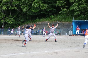翌日の準決勝は千歳ガッツ戦。民報杯で勝っているとはいえ、油断できない相手ですが、打線爆発!ゆうの柵越えホームランもあり、18-9で勝利しました。