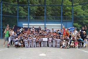 最後まであきらめずに戦い抜いた6人の6年生、代打や代走など交代で出番を待つ5年生、大きな声援で盛り上げた4年生以下と保護者、子どもたちの力を引き出してくれた指導者。みんなの力で勝ち取った優勝でした。